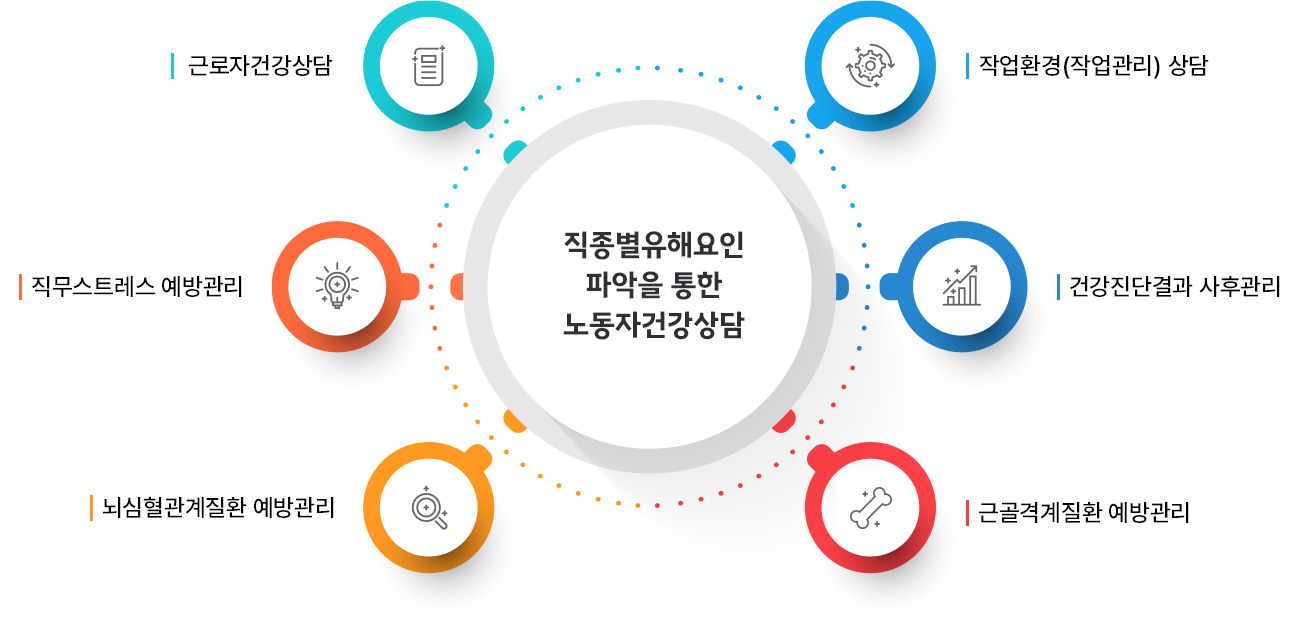 맞춤형 건강상담과 직업병 예방을 위한 프로그램 등 다양한 직업건강 서비스를 제공합니다.